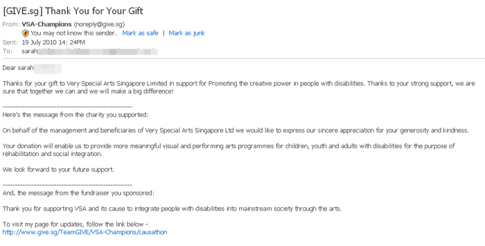 In any case! Check out Joelyn’s causathon thing here. She’s involved with Project Reach’s Causathon and her group is helping out with the Very Special Arts (VSA) Singapore.